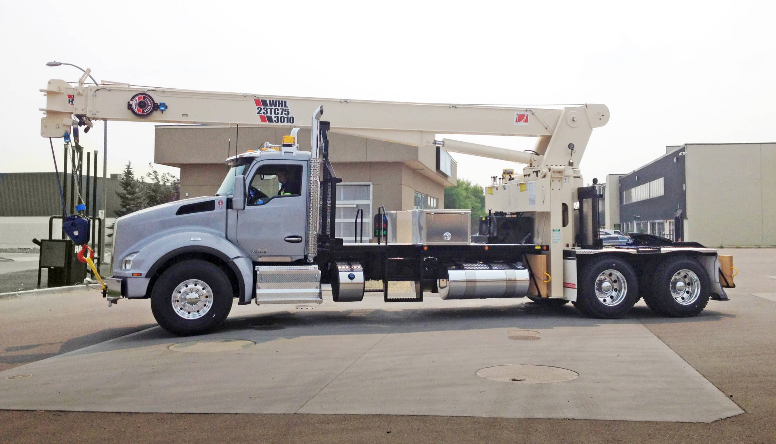 The Weldco Hydra-Lift 23-ton crane, WHL23TC75, is a mid-capacity crane with a three-stage boom that extends to 75 feet. Introduced in 2004, the model continues to be popular with a wide range of industries that appreciate its durable and rugged design.